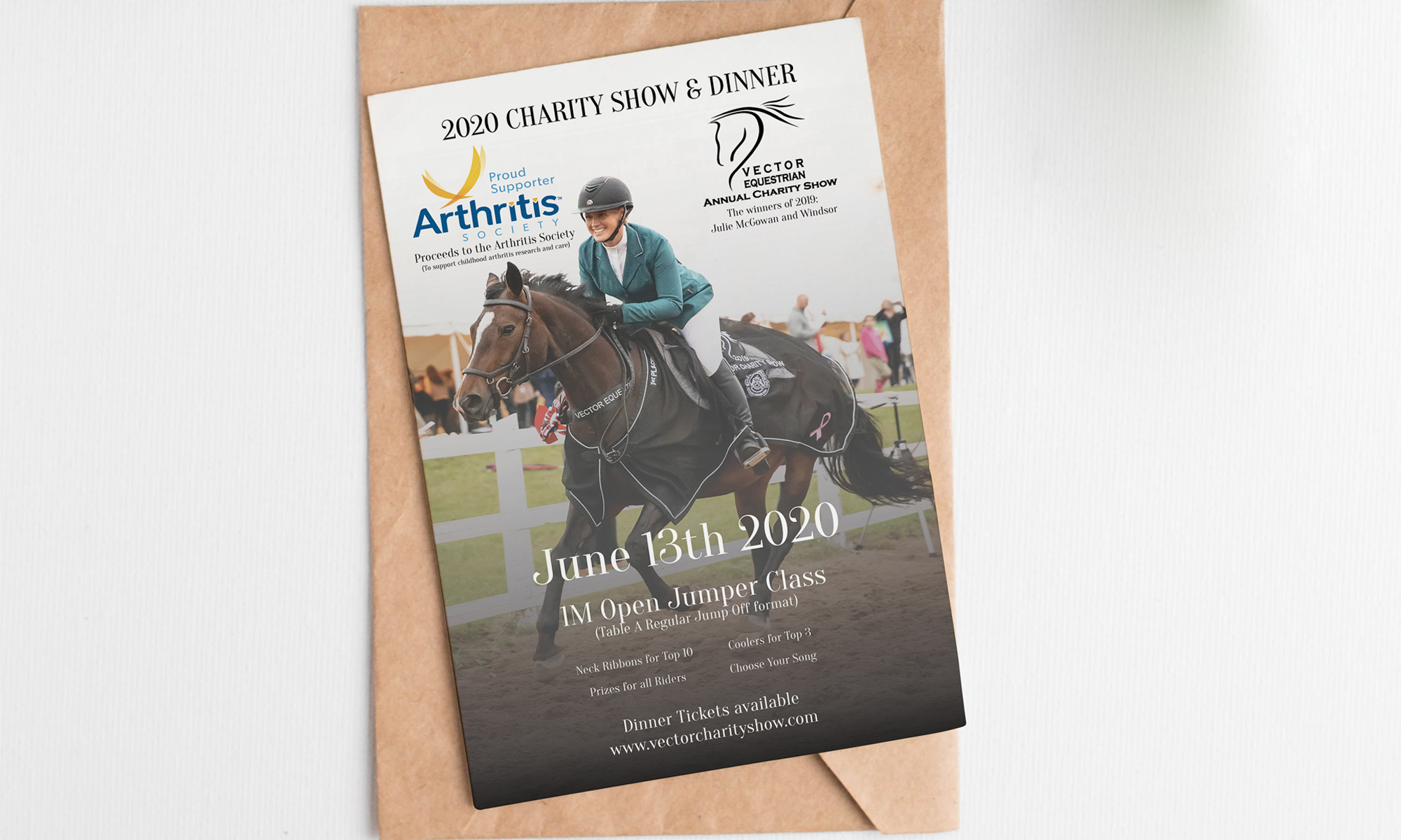 The Vector Equestrian Charity Show Infographic (top) was created to showcase how much money the event has brought in from the inaugural year in 2014 to their most recent event in 2019. The poster was printed and sent to sponsors, local businesses and clients in hopes their 2020 event would raise even more. unfortunately due to COVID-19, the 2020 charity show was postponed.